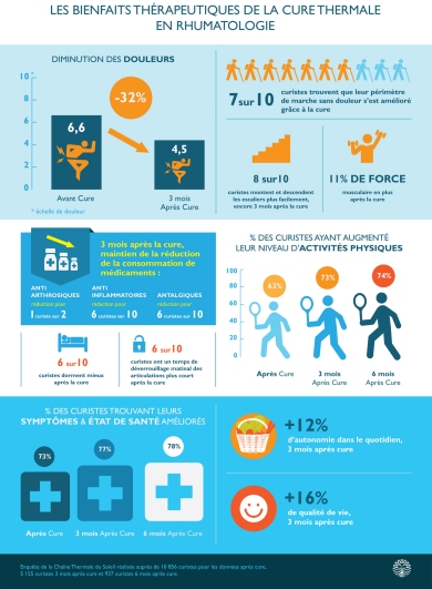 La bonne idée de la semaine nous vient des stations « La Chaine thermale du Soleil », qui ont levées le voile sur les résultats d’une enquête d’évaluation auprès de ses patients. Des questionnaires sérieux élaborés par des médecins et envoyés aux curistes juste après la cure. S'en suivent trois autres; 3, 6 et 9 mois après.